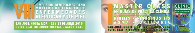 Área Científica Menarini organizó del 22 al 23 de abril de 2015 en la ciudad de San José de Costa Rica, el VIII Simposium Centroamericano Multidisciplinario de Enfermedades Alérgicas y de Piel. Posteriormente, el viernes 24 de abril se celebró por primera vez en Centroamérica el I Master Class en Guías de Práctica Clínica. “Rinitis, Rinosinusitis, Asma y Urticaria” avalado por la Academia Europea de Alergia e Inmunología clínica (EAACI), Consenso Europeo de Rinosinusitis y Pólipos nasales (EPOS3), Sociedad Respiratoria Europea (ERS), Hospital Universitario Clínico de Barcelona y por el Institut D’Investigacions Biomèdiques August Pi i Sunyer (IDIBAPS).