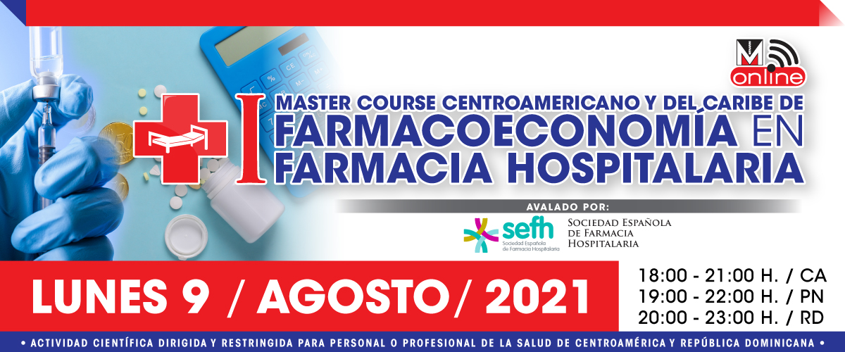 El Master Course Centroamericano y del Caribe de Farmacoeconomía en Farmacia Hospitalaria se realizará el lunes 9 de agosto, iniciando a las 18:00 hrs. de Centroamérica, 19:00 hrs. de Panamá, y 20:00 hrs.en República Dominicana, y contará con la presencia de notables conferencistas de reconocimiento internacional y regional.