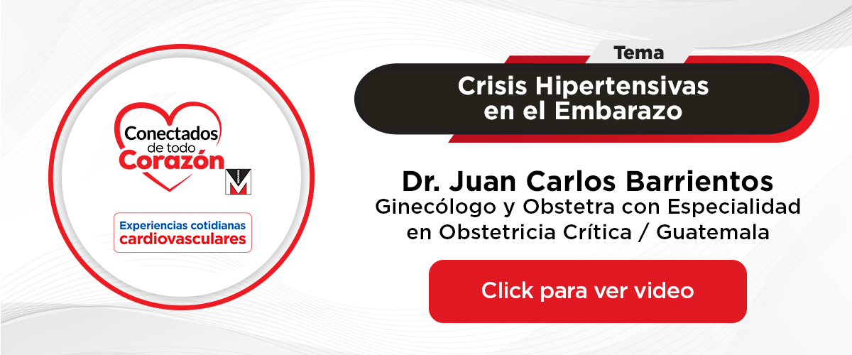 En esta oportunidad, a través del Programa de todo Corazón, tenemos el gusto de compartir con usted la quinta entrevista del proyecto Conectados de Todo Corazón: Experiencias Cardiovasculares Cotidianas, titulada: “Crisis hipertensivas en el embarazo”, en la que el Dr. Juan Carlos Barrientos, Ginecólogo y Obstetra con Especialidad en Obstetricia Crítica de Guatemala, nos comparte su experiencia en este tema de mucha relevancia en la práctica cotidiana.