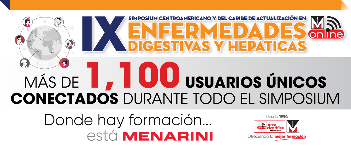 Del 6 al 8 de octubre de 2021, Grupo Menarini Centroamérica y el Caribe, a través de la plataforma de Área Científica Menarini Online, realizó el IX Simposium Centroamericano y del Caribe de Actualización en Enfermedades Digestivas y Hepáticas.